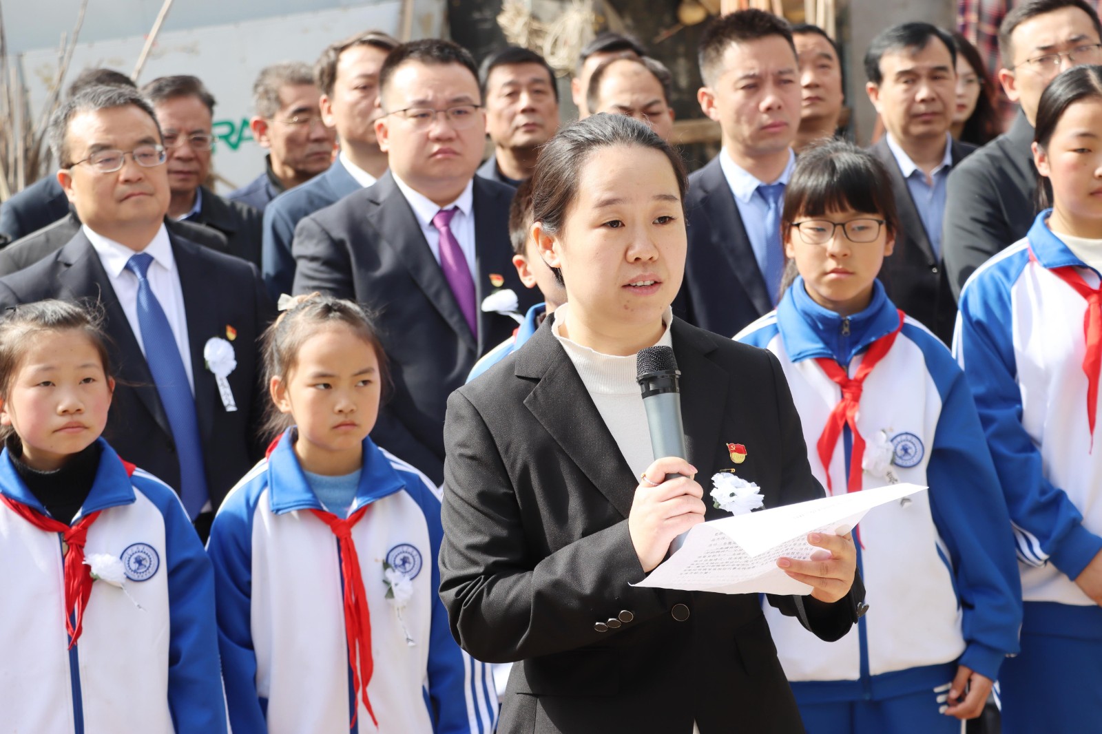 活动现场,庄严肃穆,全体人员肃立默哀,向赵梦桃敬献鲜花和花篮,集团公司党委书记、董事长杨隆丰,总经理贺颖分别整理挽联。集团公司党委副书记范振华领誓“梦桃精神”,咸纺集团党委副书记、副董事长范斯特介绍了赵梦桃生平事迹,现任梦桃小组组长王丹发言,咸阳市高新梦桃学校少先队员献唱《我们是共产主义接班人》,全体人员依次瞻仰墓碑、敬献鲜花,表达对赵梦桃的无限敬仰和追思。