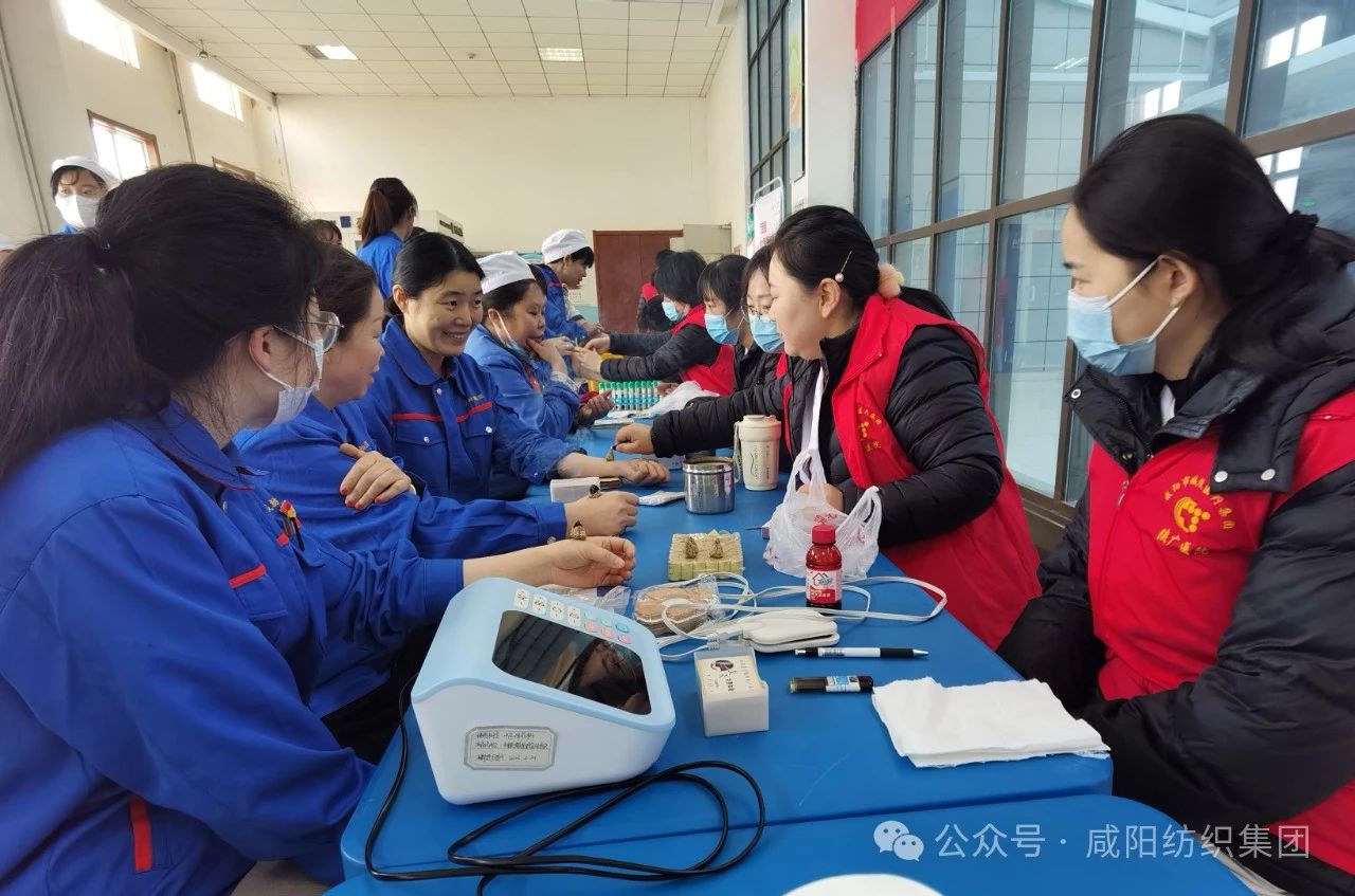 【科普赋能 提升健康素养】3月6日上午,集团公司工会联合咸阳市城投医疗集团陕广医院开展义诊活动。为广大女职工进行血压、血糖、血粘度,骨密度检查及内、外科疾病等咨询服务。同时针对纺织行业工作特点,提供了预防职业病、女性常见疾病防治等方面的专业建议,宣传医保政策、急救知识、中医养生及艾灸理疗知识宣传等内容,为女性职工送上了一份特殊的节日礼物。